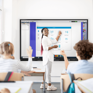 Os recursos multitoque permitem que vários alunos manipulem o conteúdo na tela como uma equipe.